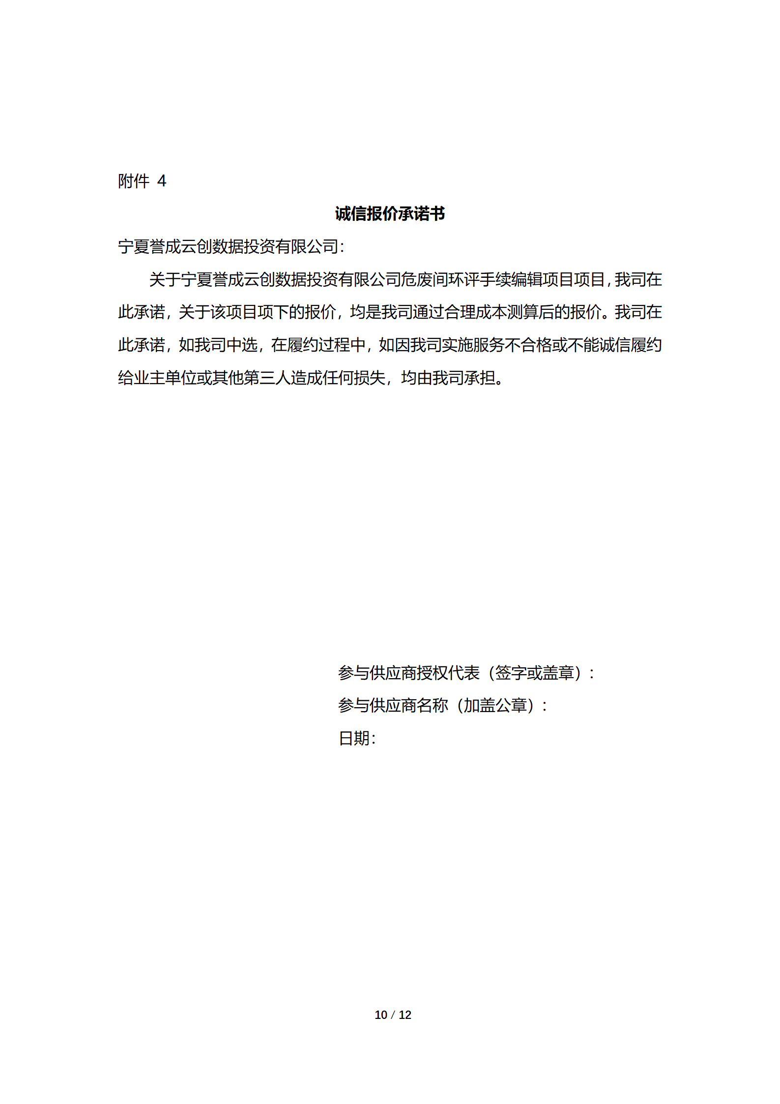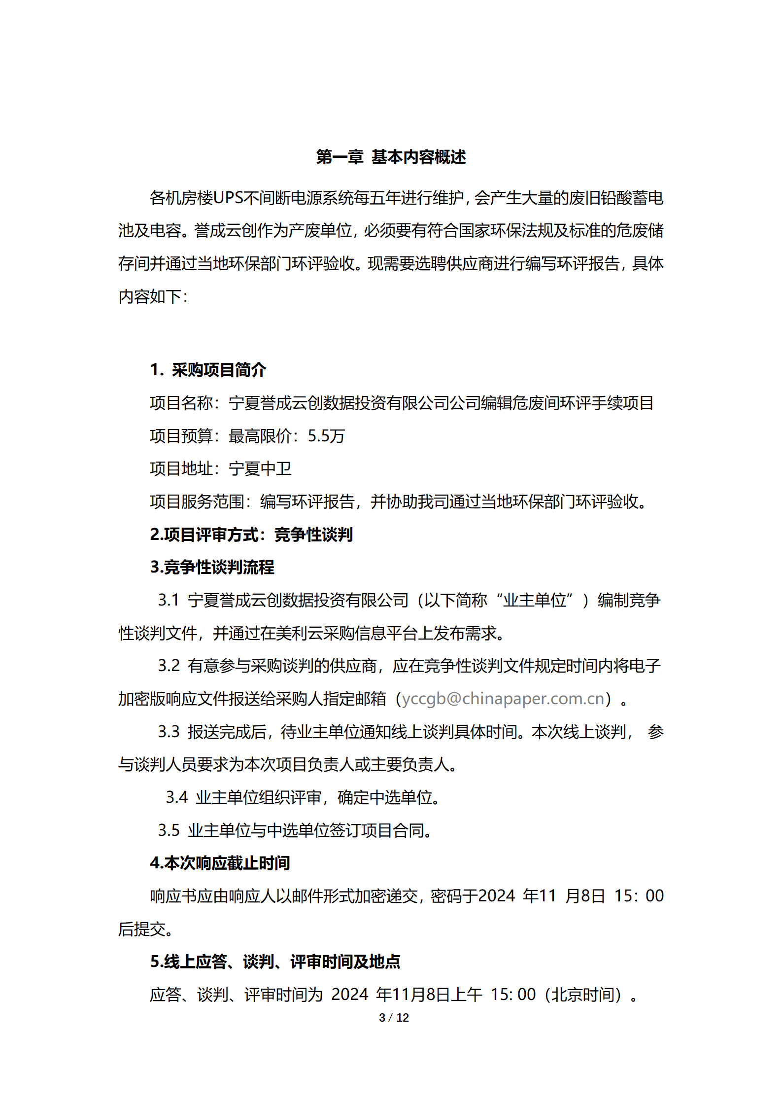 寧夏譽成云創數據投資有限公司現采購公司危廢間環評手續編輯項目,詳細采購信息參見附件詢價文件。