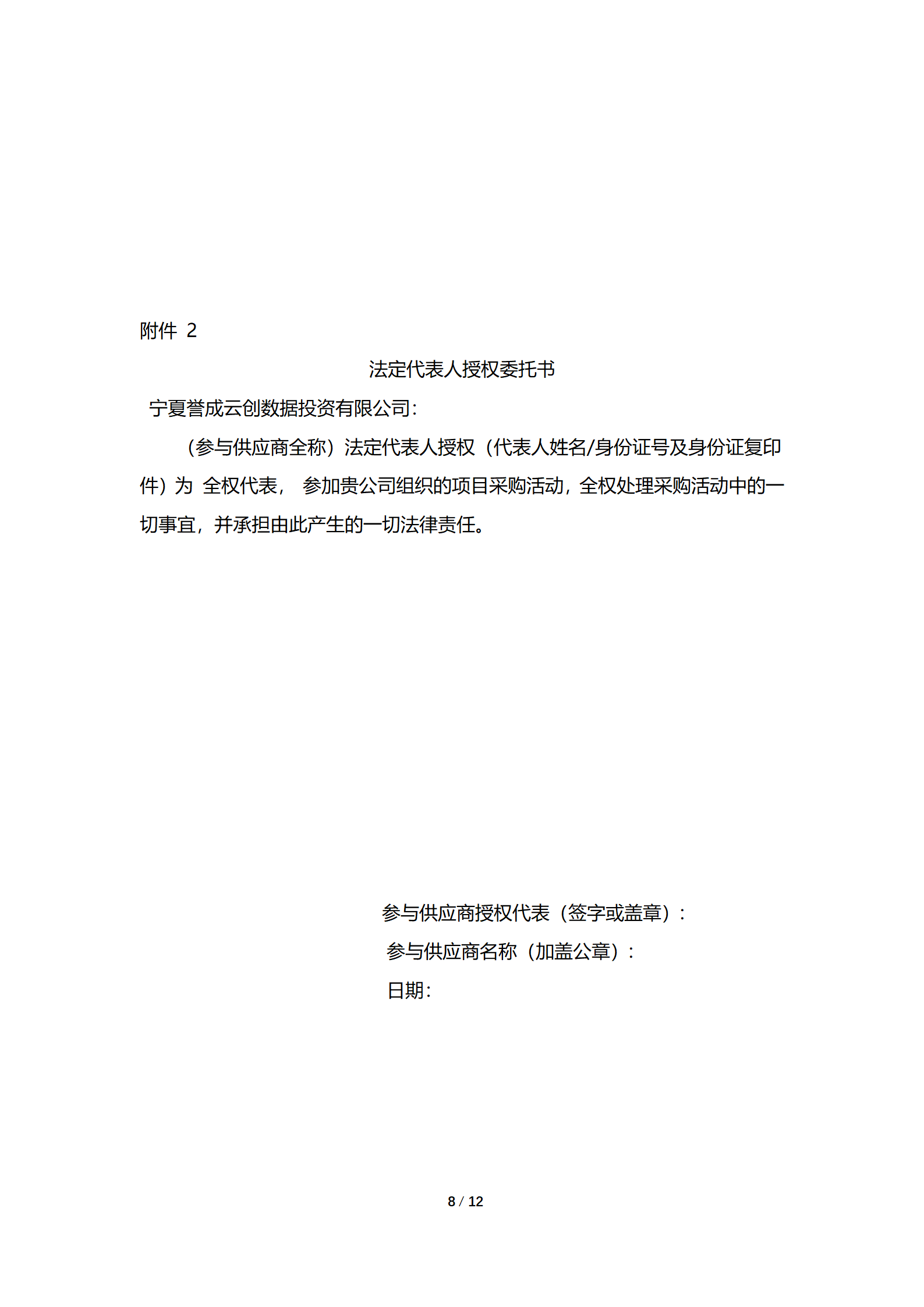詢價人:寧夏譽成云創數據投資有限公司